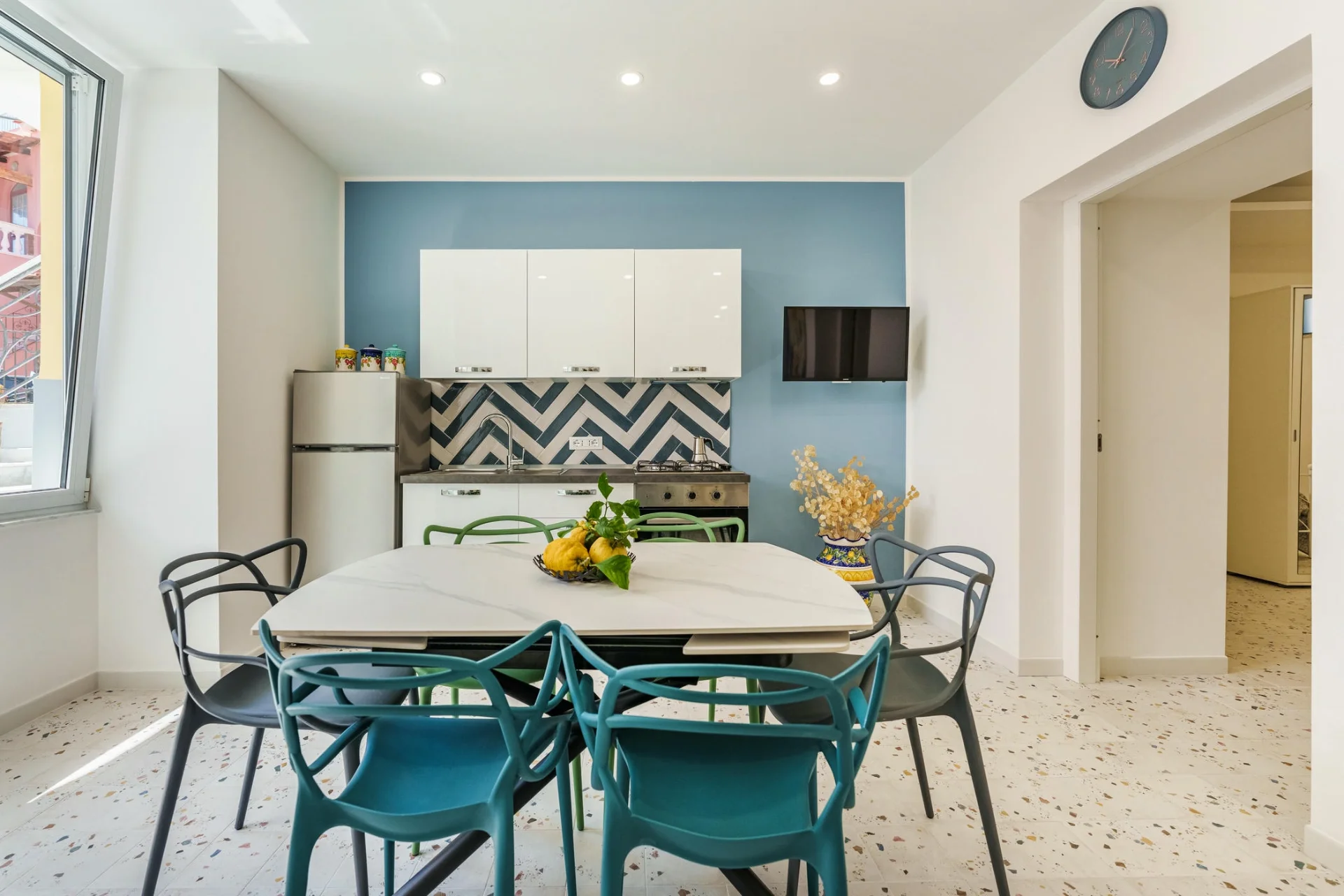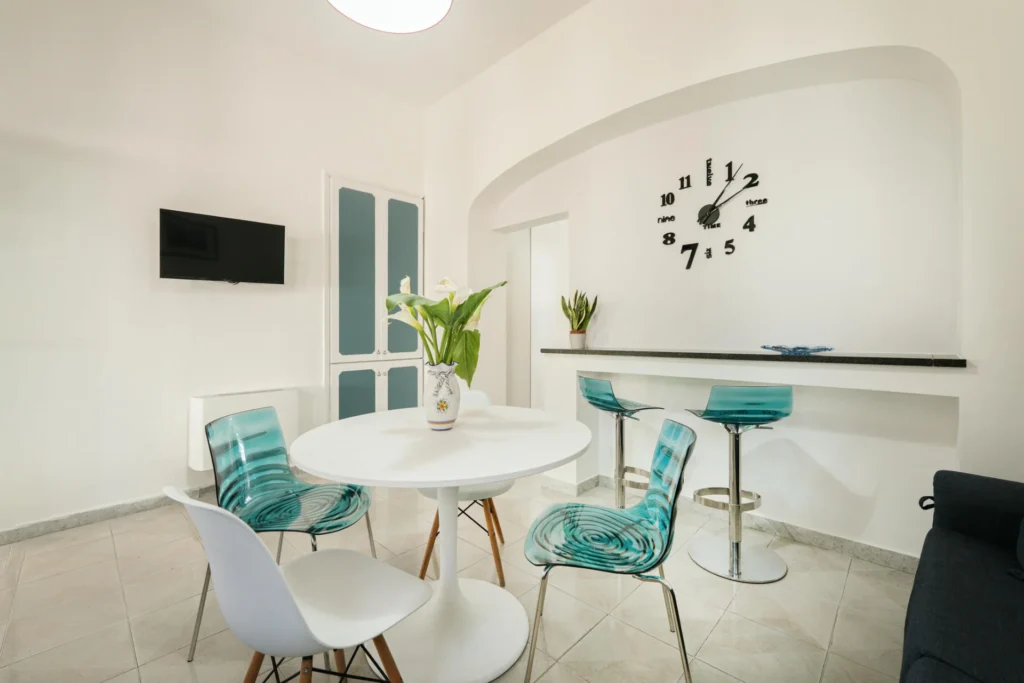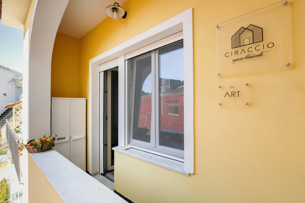 The accommodation: few houses can be as intimate and evocative as "Il Cortile", one of the three flats of "Ciraccio Apartments" in Procida, furnished with a refined taste that combines restored period furniture, designer furnishings and paintings by local artists.