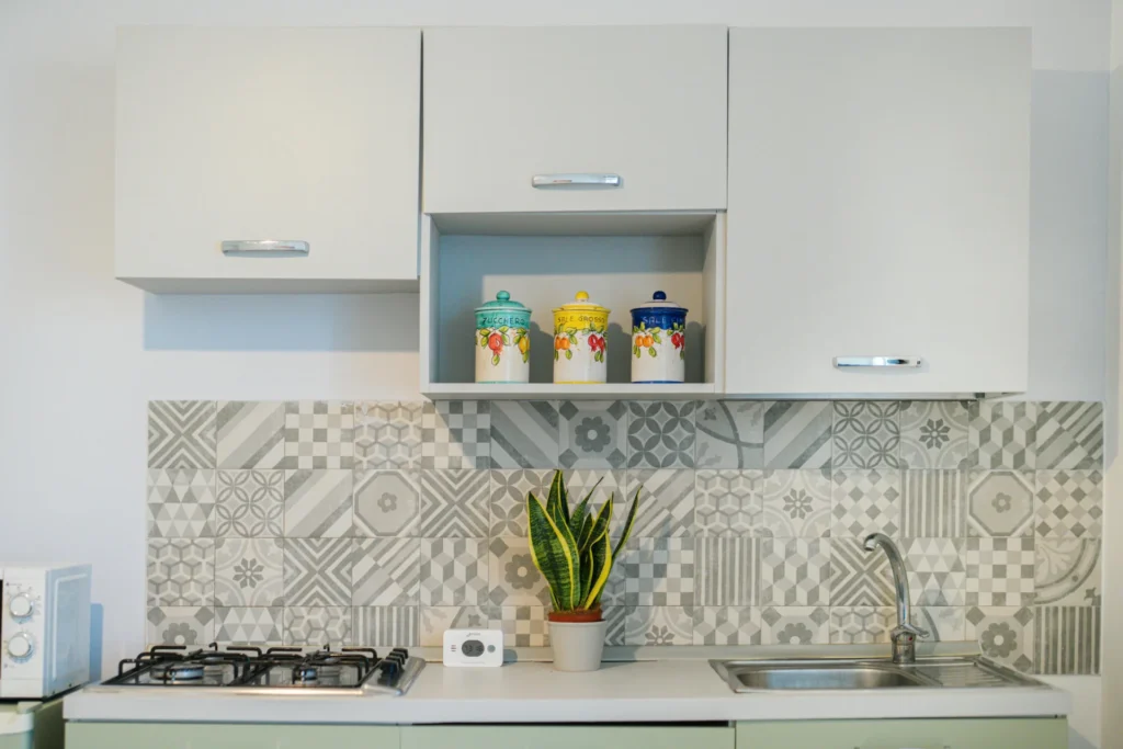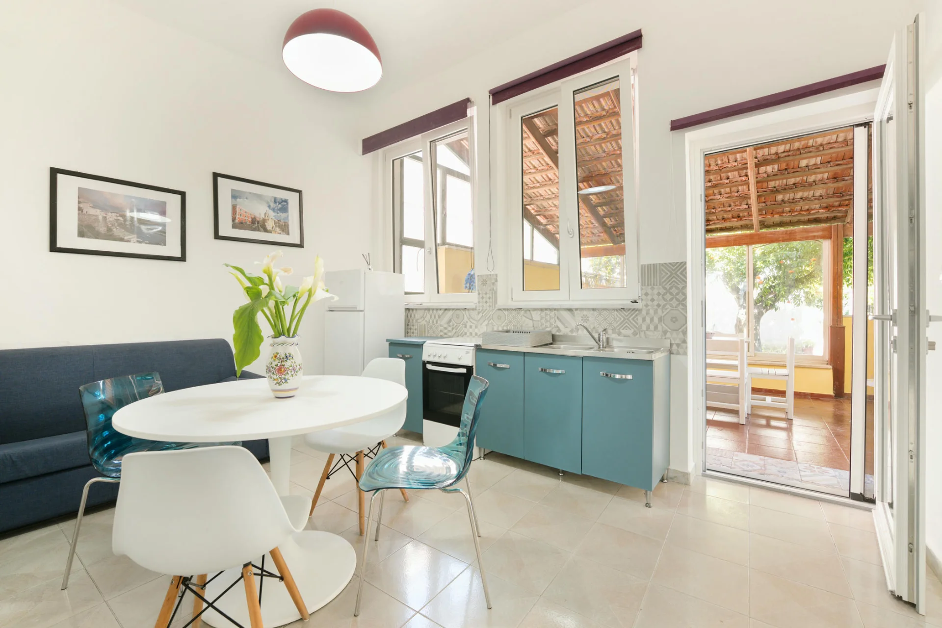 The real added value is the villa's large private courtyard, where you will find a space reserved for the exclusive use of guests equipped with a table, chairs and sun loungers; the perfect setting to enjoy breakfast outdoors or a moment of relaxation after a day spent at the nearby Ciraccio and Pozzo Vecchio beaches.